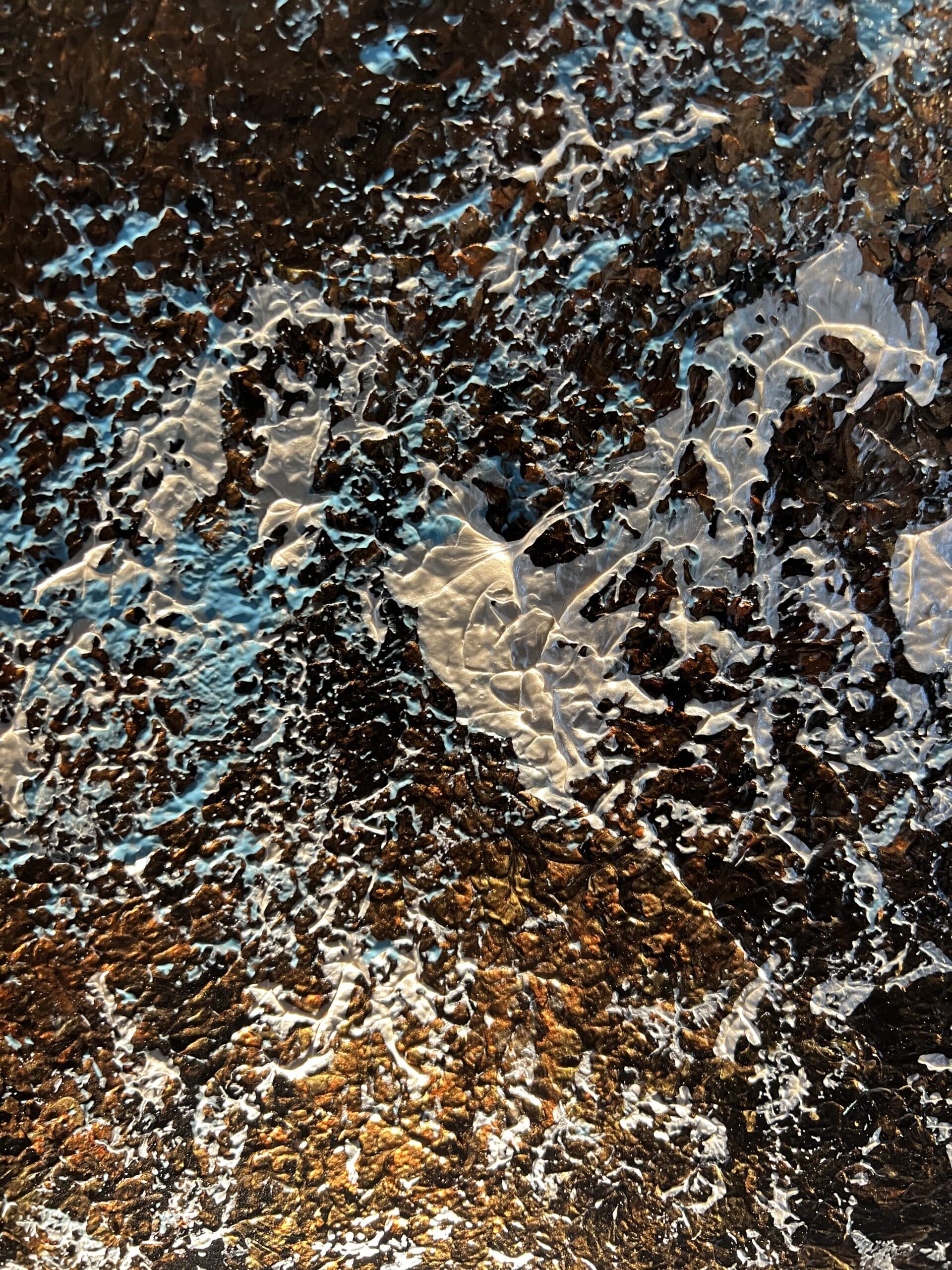Abstrakte Zusammensetzung aus reinen Pigmenten und Harz. Sehr hochglänzende Glasur.