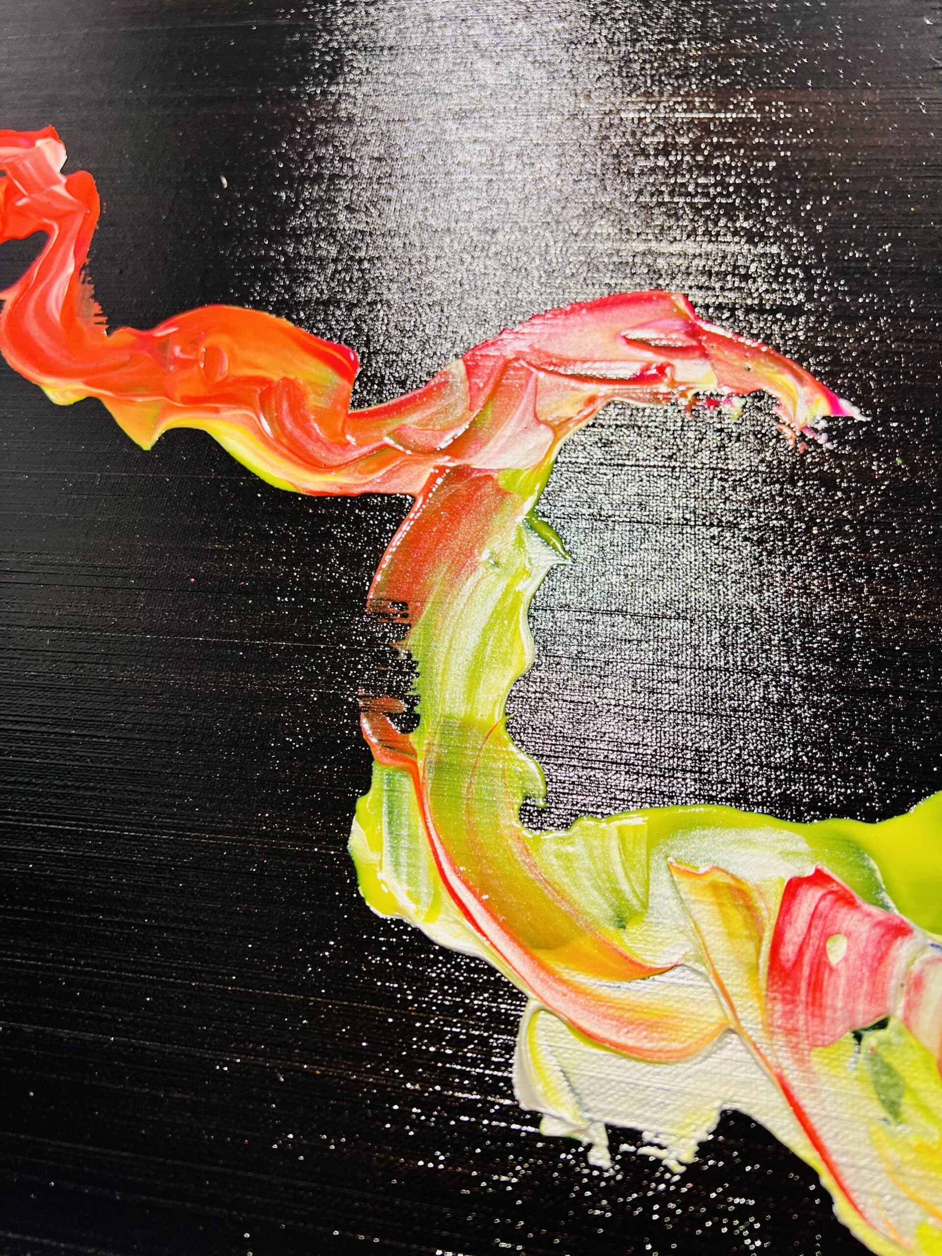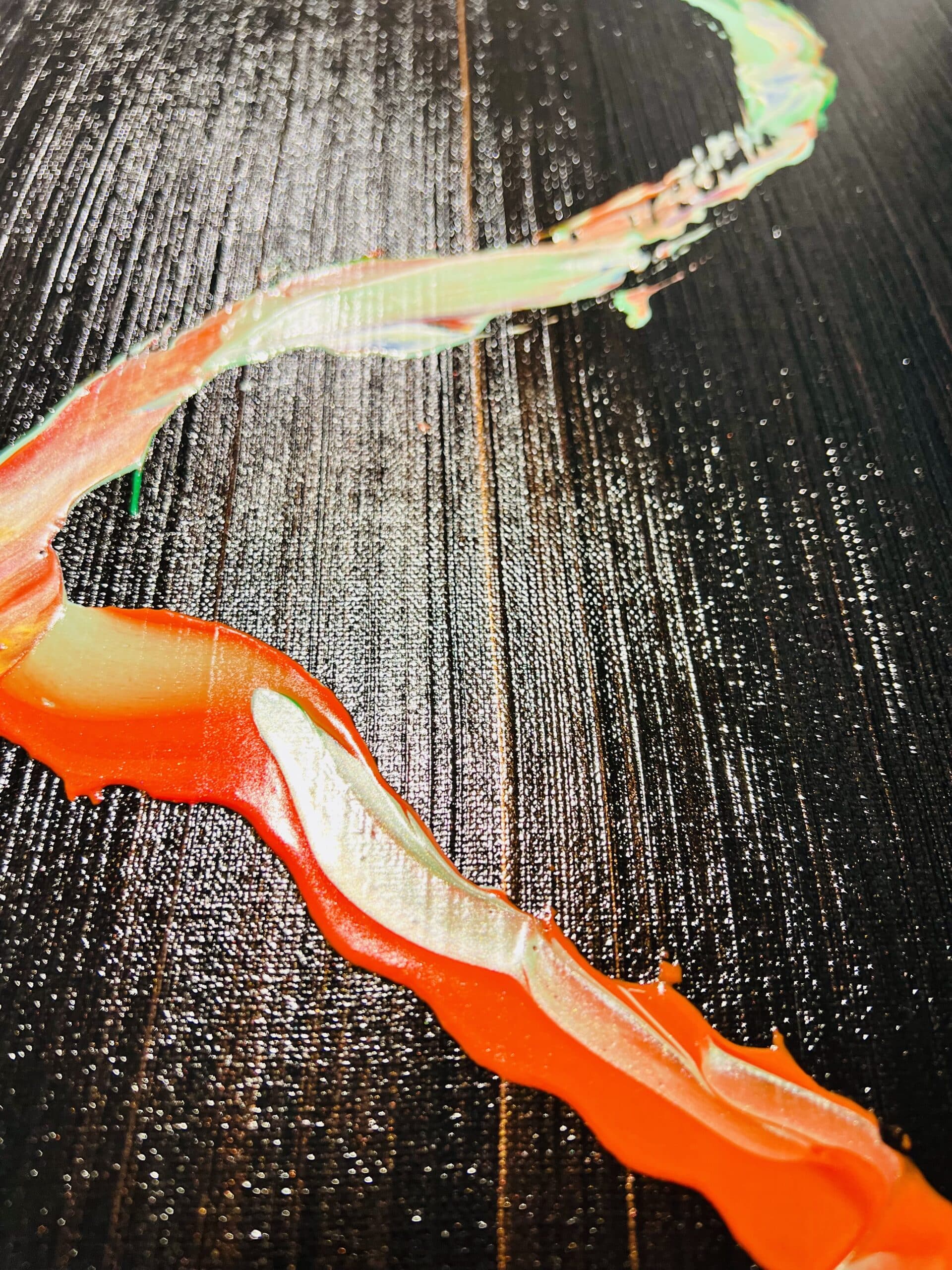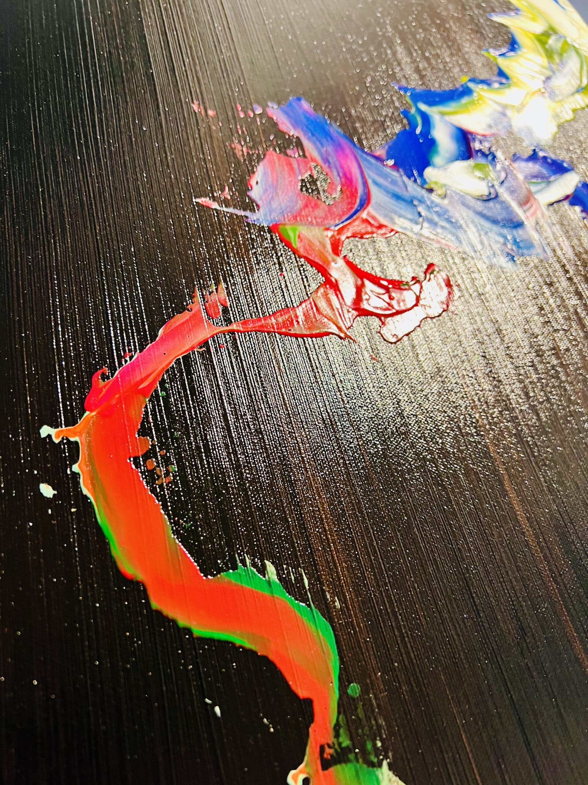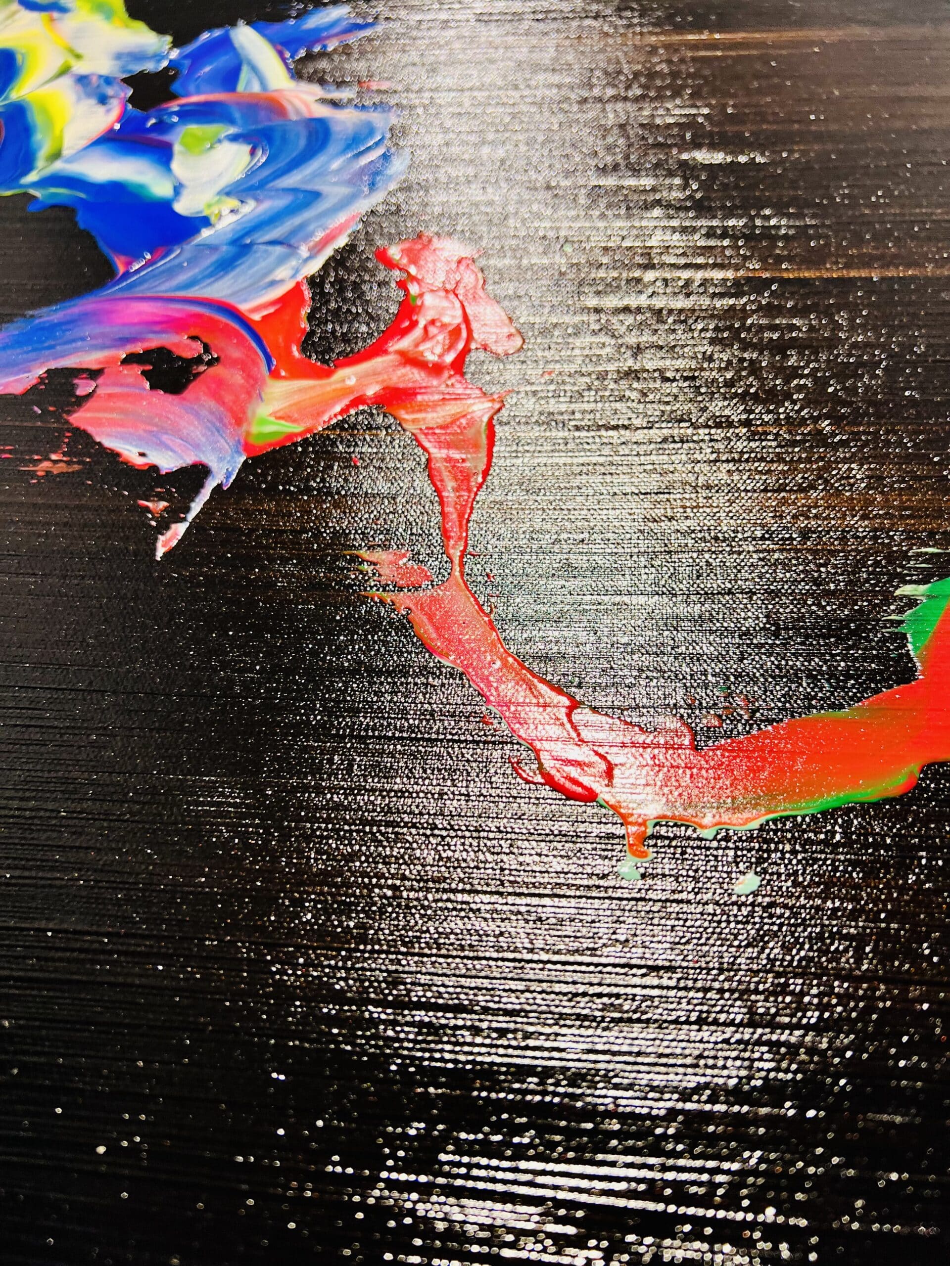 Abstrakte Zusammensetzung aus reinen Pigmenten und Harz. Sehr hochglänzende Glasur.